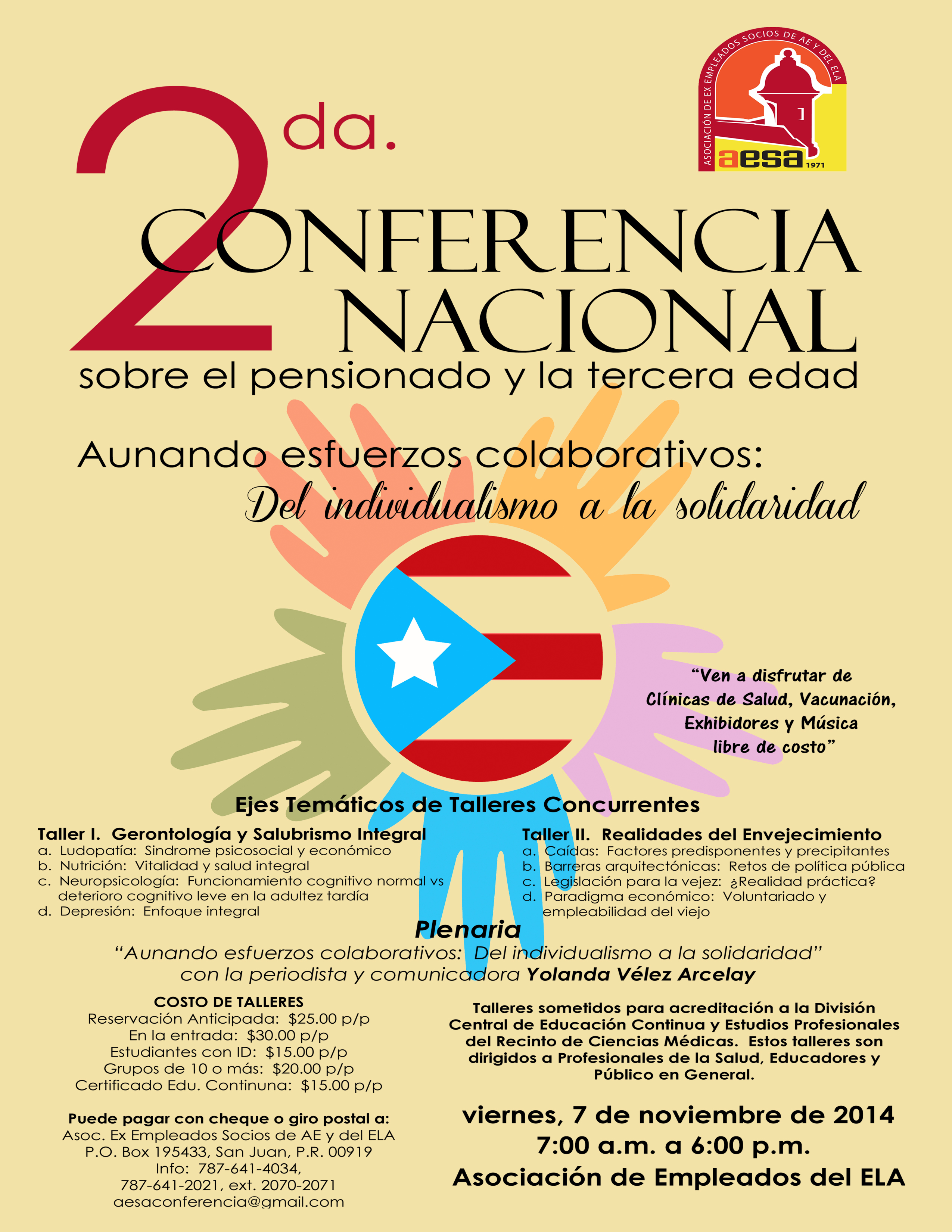 Para mayor información puede comunicarse a la Asociación de Ex Empleados Socios de AE y del ELA al 787-641-4034, 787-641-2021, ext. 2070-2071 o vía correo electrónico: aesaconferencia@gmail.com