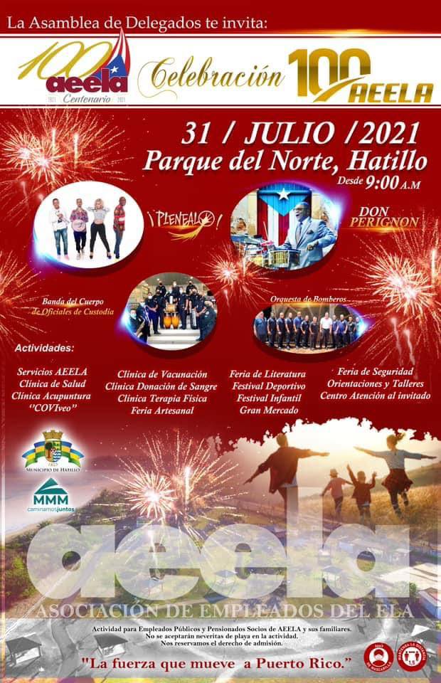 Nos complace informarles que la Asociación Exempleados de Socios en Acción (AESA), estará celebrando junto a la Asociación de Empleados del ELA sus Cien Años de servicio. Si deseas conocer más acerca de nuestra asociación te invitamos a pasar por nuestra carpa en el Parque del Norte en Hatillo el próximo sábado, 31 de julio de 2021 a partir de las 9:00 de la mañana. Te esperamos!