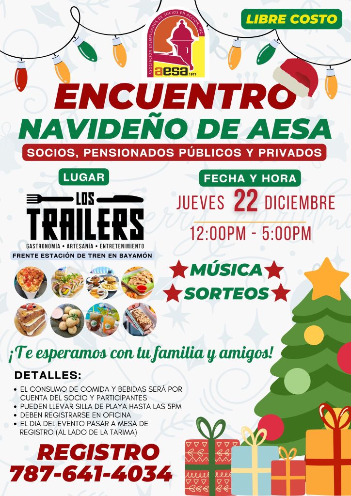 VEN A COMPARTIR CON NOSOTROS UN RATO DE ALEGRIA Y ALGARABÍA CON TU FAMILIA. CONVOCAMOS A TODOS LOS SOCIOS DE AESA Y PENSIONADOS PÚBLICOS Y PRIVADO EN GENERAL Y FAMILIA, A NUESTRO COMPARTIR NAVIDEÑO. (LIBRE DE COSTO)